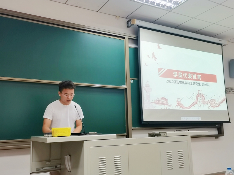 随后,2020级药物化学系硕士研究生刘长洪同学作为学员代表发言。他结合自身成长经历,向大家讲述了自己对加入党组织的向往,表达了对成为一名党员先锋的热切渴望,希望能尽己所能为人民谋幸福,为民族谋复兴。