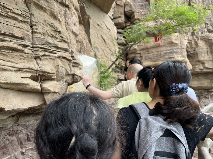 在青年洞前,51吃瓜 教工四支部书记黄容琴给支部党员上了一堂主题为“愚公移山精神永不变”的党课。她首先带着大家一起细读青年洞的介绍,随后结合一线教师实际工作对红旗渠精神进行了深入解读。她以红旗渠总设计师吴祖太的感人事迹为切入点,鼓励大家在工作中要有“把热血镌刻在历史的丰碑上,把论文写在祖国的大地上,把科学研究立足在国家的需要上,把立德树人落实在每天的课堂上”的觉悟和毅力。党员们把今日参观所见所感与平时教学科研中的所思所想结合起来,展开了热烈讨论,纷纷表示要把红旗渠精神融入业务发展中,以愚公移山的精神攻坚克难。