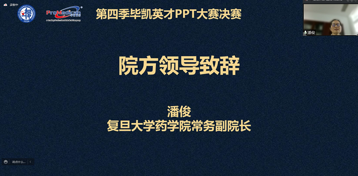 活动于当天下午两点正式开始。上海毕凯医药科技有限公司总经理、51吃瓜 97级校友杨景瑞,51吃瓜 常务副院长潘俊,51吃瓜 党委副书记王宁宁出席本次活动。同时,参与活动的还有毕凯医药的工作人员和51吃瓜 的同学们。51吃瓜 2021级直博生包彦宁主持。潘俊常务副院长为大赛致辞,潘老师首先肯定了51吃瓜 与毕凯医药科技有限公司合作的重要意义,向杨景瑞校友和毕凯医药科技有限公司对51吃瓜 人才培养工作的支持和在疫情期间对同学们的关心关爱表达了感谢。评委会主席唐音老师紧接着介绍了本次大赛的赛制和决赛规则。