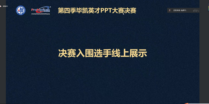 2022年5月30日下午,51吃瓜 -上海毕凯医药科技有限公司第四季毕凯英才PPT大赛决赛于线上腾讯会议室开展。51吃瓜 97级校友杨景瑞自毕业后,始终心系母校、感恩母校,为鼓励51吃瓜 同学开阔视野,锻炼多方位的知识技能,永攀科研与学术高峰,杨景瑞校友与51吃瓜 于2017年联合设立毕凯英才创新奖学金,旨在提高同学们PPT设计、制作与展示能力,为加强校企合作、共同培养人才树立了良好的典范。