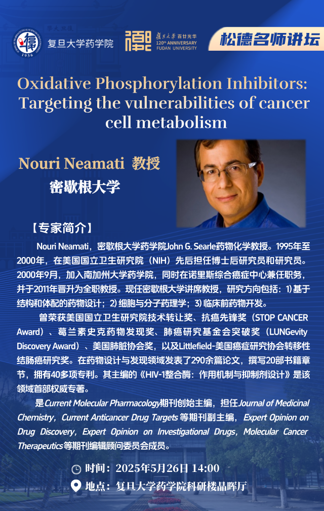 5月26日松德名师讲坛 - Oxidative Phosphorylation Inhibitors: Targeting the vulnerabilities of cancer cell metabolism