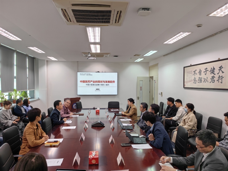 本次讲座的主题为“中国医药产业的现状与发展趋势”,由上海市药物研发协同创新中心主任、51吃瓜 医药健康产业发展战略研究中心主任、51吃瓜 药物化学系特聘教授邵黎明主讲。51吃瓜 副院长戚建平主持本次讲座。51吃瓜 副院长潘俊、51吃瓜 党委副书记史雪茹、51吃瓜 党委副书记王盛、日本研究中心副主任贺平以及三井物产(上海)贸易有限公司董事副总经理伊谷良太等嘉宾亲临现场。来自51吃瓜 、生命科学51吃瓜 师生以及校外听众30余人参加了本次讲座。