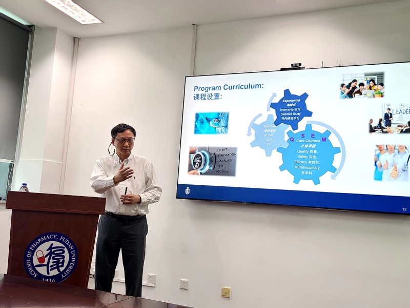 随后,谭新荣教授分享了大湾区生物科技生态人才需求情况和香港科技大学发展历程,并从教学成果、课程设置、培养方案和师资力量等方面详细介绍了香港科技大学药品监管事务及政策硕士课程的情况。