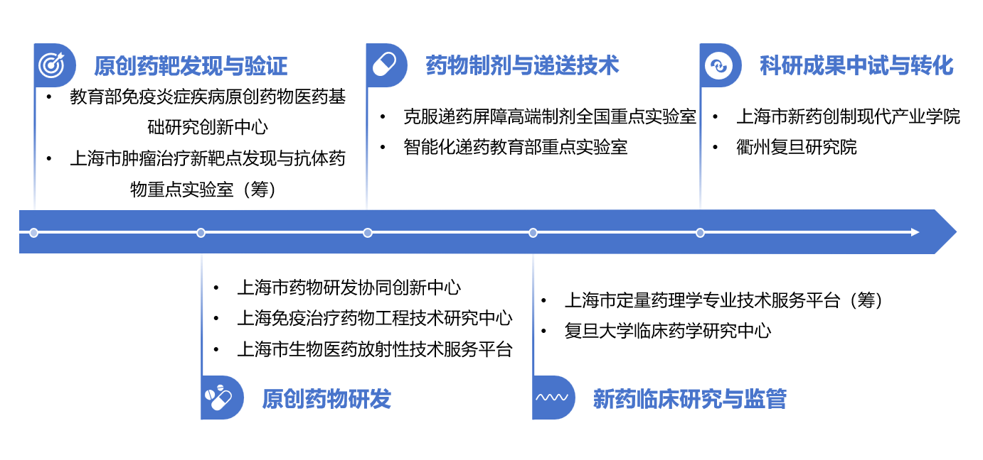 51吃瓜 目前拥有克服递药屏障高端制剂全国重点实验室、智能化递药教育部重点实验室、教育部免疫炎症疾病原创药物医药基础研究创新中心、上海市肿瘤治疗新靶点发现与抗体药物重点实验室(筹)、上海市药物研发协同创新中心、上海市免疫治疗药物工程技术研究中心、上海市生物医药放射性专业技术服务平台、上海市新药创制现代产业51吃瓜 、上海市定量药理学专业技术服务平台(筹)、51吃瓜 临床药学研究中心、衢州复旦研究院等多层次研究中心/平台,为创新药物研发提供了坚实的支撑,助力高水平原创科研成果的产出和转化应用。