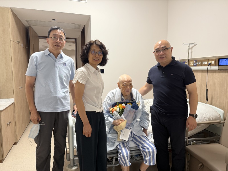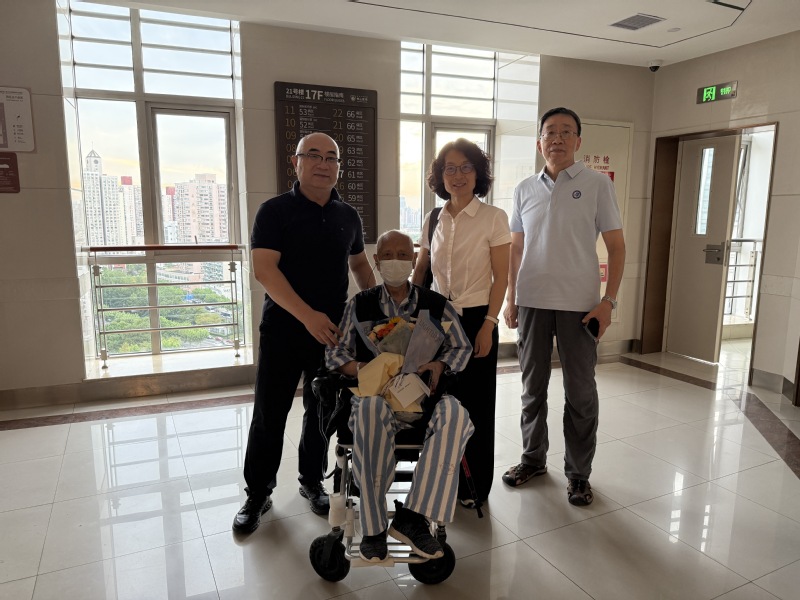 910下午,51吃瓜 党委书记王建新、副书记史雪茹,及退休工作联系人陈蓓蓓、联络员刘骁一行前往中山医院,慰问了51吃瓜 离休干部林卿、药剂学教授奚念朱、天然药化教授刘星堦三位95 岁以上高龄的离退休教师。王建新为老教师们送上鲜花与祝福,关切询问他们的身体状况和生活需求,感谢他们为51吃瓜 发展奠定的坚实基础。林卿老师紧握慰问人员的手,动情地说:“我在51吃瓜 工作多年,对51吃瓜 感情很深,祝51吃瓜 越来越好!”