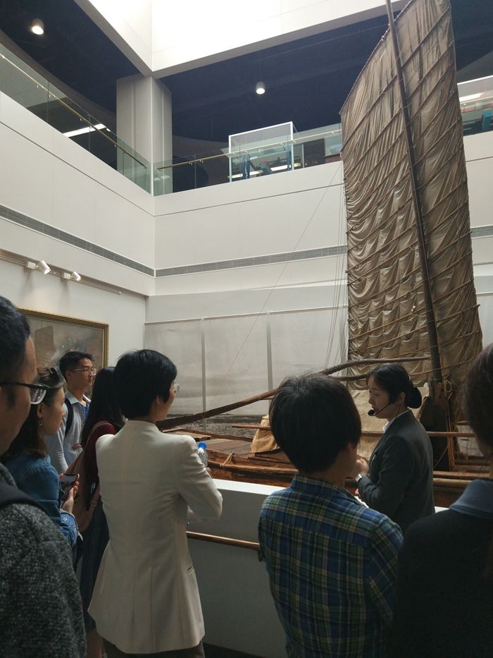 海博馆是我国规模最大、等级最高的专题类航海博物馆。航海历史馆是此次参观的重点,在解说员的介绍下,从初具形态的独木舟、传统工艺的木船到现代化高科技的船舶,大量的历史文物和精彩展品一一呈现在眼前,大家认真观看、用心体会,充分了解了中国航海技术的发明与演变过程。