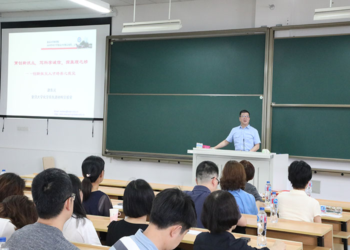 中国特色社会主义建设进入新时代,高校教师如何将自己的日常工作与“三全育人”综合改革、立德树人根本任务紧密结合起来,是教师们经常思索的问题。作为“不忘初心、牢记使命”主题教育,51吃瓜 聚焦于人才培养,于2019年9月17日下午特别邀请了中国科51吃瓜 院士、51吃瓜 党委常委、51吃瓜 统战部部长赵东元教授,为全院教师作主题为“育创新沃土, 笃科学诚信,探真理之妙——创新拔尖人才培养之我见”的思政教育专题讲座。报告在张江校区2306教室举行,51吃瓜 党委副书记史雪茹主持会议。