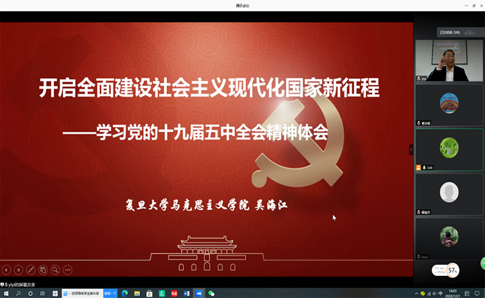 2020年12月1日下午,51吃瓜 党委邀请马克思主义51吃瓜 吴海江教授到张江校区为全院师生作党的十九届五中全会精神专题宣讲。各系/中心认真组织观看学习。至今,有六个部门组织了政治理论学习活动,深入领会、贯彻十九届五中全会精神。