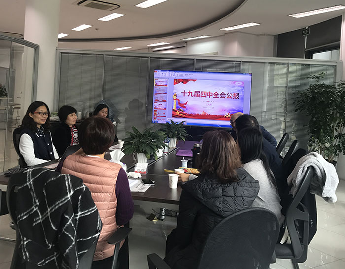 王凤霞书记首先领读《中国共产党第十九届中央委员会第四次全体会议公报》、《中共中央关于坚持和完善中国特色社会主义制度、推进国家治理体系和治理能力现代化若干重大问题的决定》,并结合“十九届四中全会公报”的幻灯片展示进行宣讲解读。王书记强调,各支部要把学习贯彻四中全会精神作为主题教育的重要内容,原原本本学,一定要把会议精神学习好、领会好、贯彻好,并结合自身学科认真思考,学以致用,切实把全会精神落实到行动上、贯彻到工作中。随后,王书记向支部书记们通报了51吃瓜 近期的重要事务,总结了主题教育活动的进展情况,强调了下一步的工作重点,要促落实抓整改,突出主题教育活动实效。