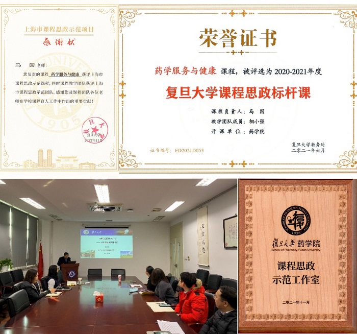 积极探索新形势下推进党建工作的有效载体——课程思政建设。通过课程思政品牌创建活动,统筹推进党建工作与教学工作有机结合,形成了支部党建特色。教学过程中,马国老师以药学人文教育和案例教学为抓手,将课程知识点、思政元素与教学案例紧密融合,潜移默化地将家国情怀、价值观念、政治信仰、科研诚信、职业道德等思政元素融入课程教学中,结合“四史”、校史、院史和学科发展史,实现专业教育和思政教育相统一,在润物无声中实现课程育人。鉴于马老师及其教学团队在课程思政建设方面的突出贡献,被评为上海市课程思政教学示范团队。
