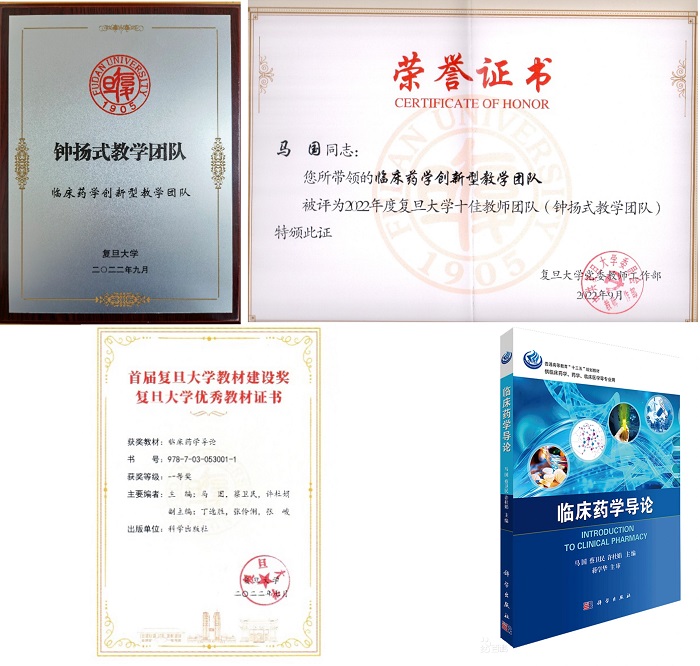 马国老师目前主讲课程7门,其中4门被评为上海市、51吃瓜 重点课程、示范课程或标杆课程;主持教改项目计10余项;编写“十三五”“十四五”规划教材专著20余部,其中主编7部,主编的《临床药学导论》荣获51吃瓜 优秀教材一等奖;荣获“钟扬式”教学团队带头人、“一健康基金”优秀教师奖、上海市教学成果奖一等奖,中华医学会医学教育研究立项课题一等奖等各类教学奖励20余项。指导的学生荣获国家奖学金,“全国大学生药苑论坛”创新成果奖一等奖、优秀奖等10余项;担任克卿书院本科生学术导师,已指导本科生获得“望道项目”等大学生科创项目和社会实践项目计20多项。