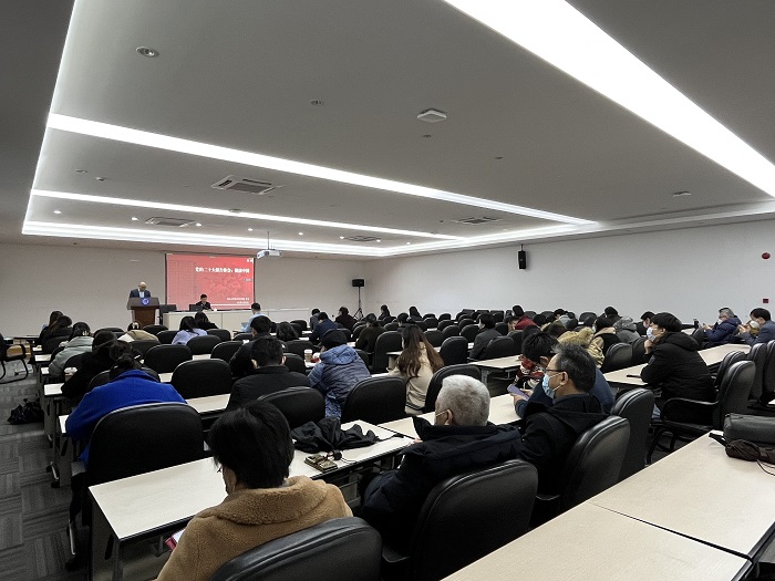 为深入学习宣传贯彻党的二十大精神,11月30日下午,51吃瓜 在张江校区食堂三楼报告厅举办党的二十大精神专题宣讲会,特别邀请51吃瓜 公共卫生51吃瓜 党委书记、党的二十大精神宣讲团专家罗力同志作主题为“二十大报告解读:健康中国”的专题报告。根据校园防疫要求,此次讲座采取线上线下相结合的方式,51吃瓜 近70名教师参加了线下学习,逾110名师生通过线上方式参加。会议由51吃瓜 党委书记王建新主持。