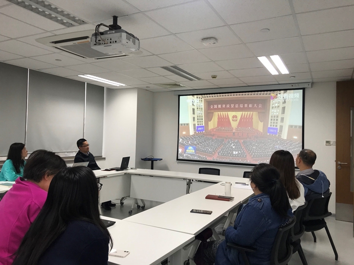4月15日中午,51吃瓜 行政管理办公室教职工在晶晖厅开展了主题为“学四史,承精神,知使命”的政治理论学习。本次学习由余琳千老师主讲,以“习近平总书记给51吃瓜 《共产党宣言》展示馆党员志愿服务队全体队员的回信”为开篇,介绍“四史”的涵义、为什么要学习“四史”以及如何学习“四史”等。会上,通过集中观看三段历史影像资料——《中国共产党的百年征途》、《改革开放的伟大壮举》、《党的十八大以来的历史性成就和历史性变革》,老师们不由感慨我们从站起来、富起来,再到今天,终于踏上强起来的新征程,先辈们在战争年代、困难时期艰苦奋斗传承下来的革命精神,将始终激励着我们奋力前行。随后,大家围绕运用“学习强国”平台保持常态化学习展开讨论,纷纷表示今年是建党一百年,又是“十四五”开局之年,我们一定要好好学习与弘扬“四史”精神,内化于心,外化于行,积极投入到学习工作中去。
