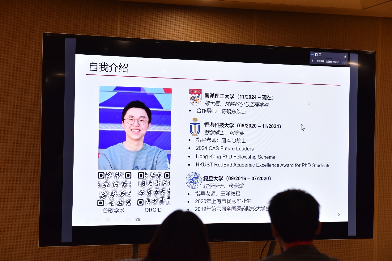 最后,来自香港科技大学的博士生沈翰辰通过线上的方式带来主题为《高灵敏度近红外区聚集体探针用于生物成像和检测》的报告。沈翰辰介绍了其课题组的两个工作。其一通过结合AIE、PSP与TICT成功制备了一个近红外二区激发的声光源仪探针的工作,其二成功制备了一个具有超高亮度的精工二次染料。