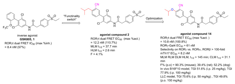 图1. 新型联芳基酰胺类RORγt激动剂的发现和成药性优化