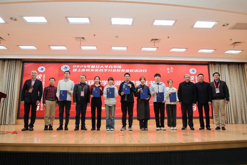 上医校友会药学分会副会长、松德基金发起人之一、85级药化专业校友峰山宣读了本年度松德奖学金获奖学生名单,并与基金发起人代表一起向获奖同学颁发了荣誉证书。