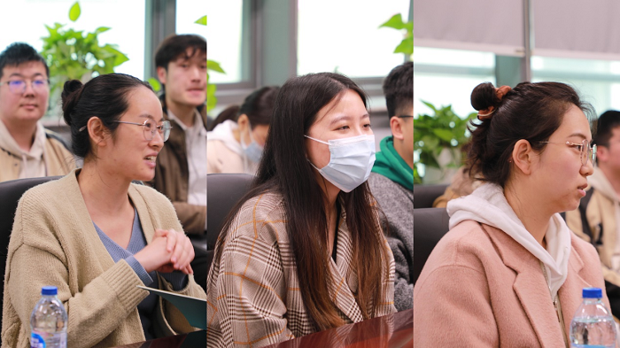 几位老师发表讲话后,同学们就自己感兴趣的话题与老师们展开了热烈探讨。倪佳慧同学就国内外博士后和医药公司对新人的培养模式差别提出疑问,邵黎明老师认为,国外的博士后更具主观能动性,对科研充满好奇心,而国内外的硬件条件差距不大。一些知名的大型医药企业具备完善且层次分明的管理制度,更能培养新人工作的规范性。新兴的小公司则相对自由度更高,能学到的东西范围更广。姜岚同学对目前生信分析在科研中的运用提出问题,疑惑是否需要去跨领域深入学习该技术。王任小老师肯定了姜岚同学的好奇心与主观能动性,但由于领域跨度过大,他鼓励同学们能够学习如何去使用成熟的算法来分析数据并寻找合适的伙伴进行合作交流。最后,洪兰老师对邵黎明和王任小两位教授百忙之中抽空来参加师生共建活动表示感谢,她鼓励同学们要主动与老师多交流,为自己的未来发展收获专业的指导建议。