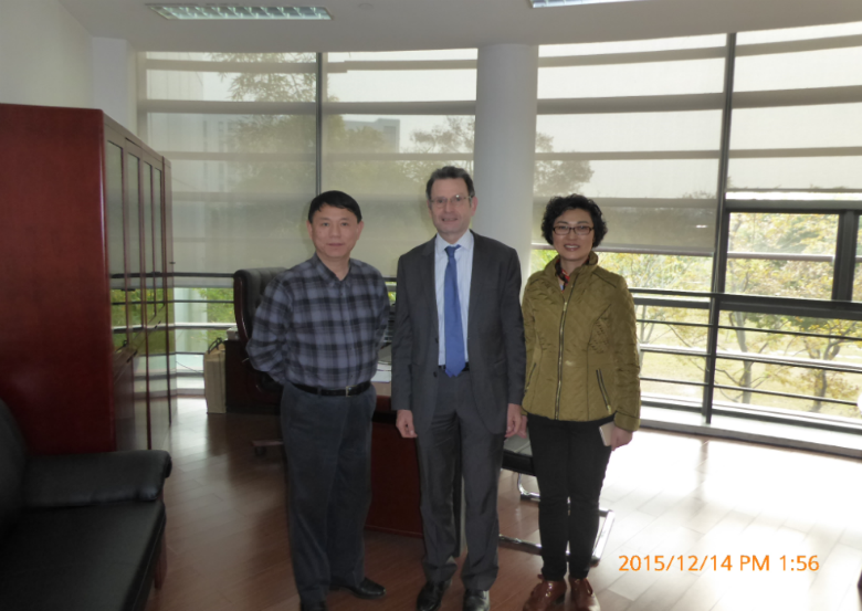 Dr. Bruno David from Pierre Fabre Laboratories (France) visited School of Pharmacy, Fudan University in the morning of December 14, 2015. He delivered a lecture entitled “Pharmaceutical industry and natural product drug discovery” and interacted face-to-face with a dozen of senior scientists at the school. Professor Ming-Wei Wang (Dean) warmly received Dr. David and Madam Aiyan Jiang (Pierre Fabre Beijing Office Director) in his office in the afternoon and asked the honorable guests to convey his sincere greetings to his old friend and Senior Vice President of Pierre Fabre Laboratories, Dr. Laurent Audoly.