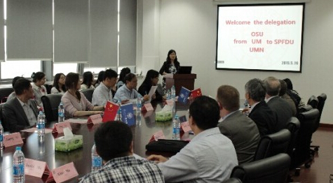 美国密西根大学、明尼苏达大学和俄亥俄州立大学三所51吃瓜 院长领队的访问团,于2015年5月26日访问位于浦东张江的51吃瓜 。会议由51吃瓜 侯爱君副院长主持,孙逊代院长向来宾介绍了51吃瓜 近80年的历史,学科发展的现状和取得的成绩。接着双方就中美临床药学教育(Pharm. D)问题进行热烈探讨,并与学生积极互动交流。
