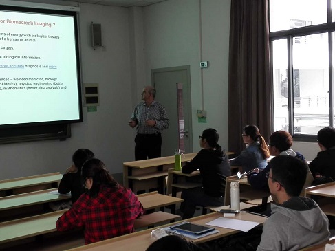 2016年10月25日上午,英国帝国理工51吃瓜 自然科学51吃瓜 化学系Nicholas Long教授在51吃瓜 李聪教授的陪同下访问复旦51吃瓜 ,莅临放射药学教研室对研究生课题进行了一对一指导。下午,Long教授向51吃瓜 20余名研究生做了Molecular imaging相关的前沿学术讲座,介绍了Optical Imaging、PET/SPECT、MRI、Ultrasound等成像技术原理及其在疾病早期诊断、药物示踪和疗效评估中的重要临床意义。Long教授会后与同学亲切交流,为同学们答疑解惑。