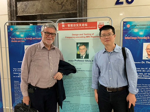 2019年10月16-18日,应51吃瓜 李聪教授与类脑智能科学与技术研究院张孝勇博士邀请,欧洲分子影像学会前任主席、意大利都灵大学副校长Silvio Aime访问51吃瓜 ,并向师生作了题为《频率编码磁共振探针研究进展》的学术报告。
