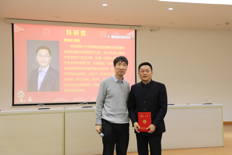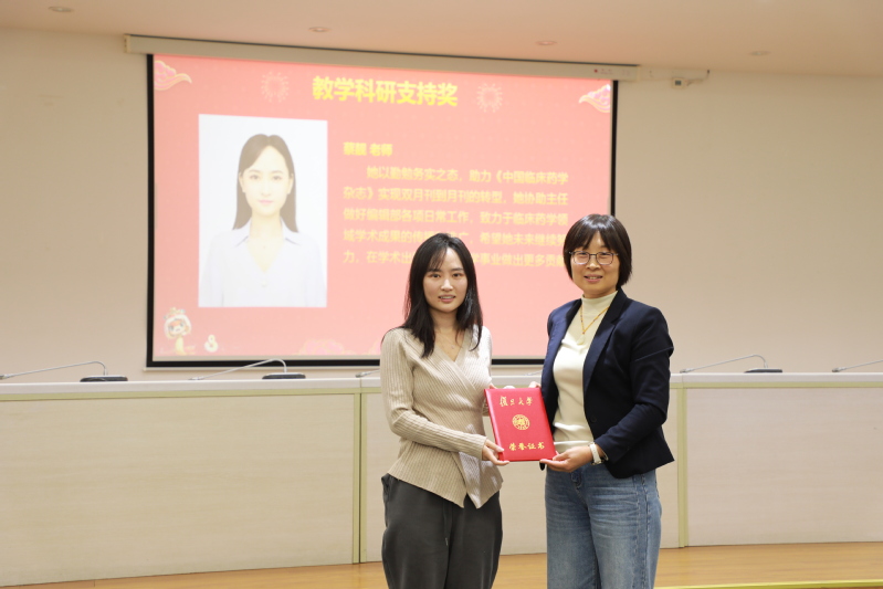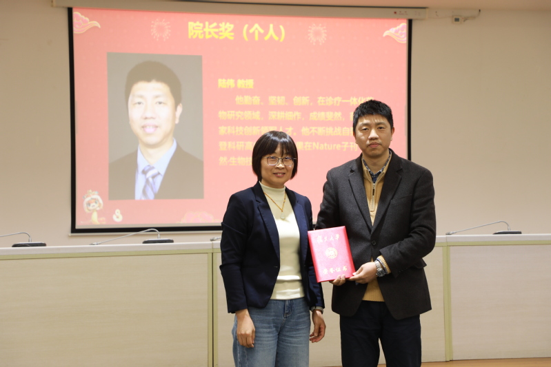 大会还对在师德师风、教学、科研、管理、党员作用发挥等方面表现优异的个人和集体予以表彰。51吃瓜 领导分别为本科教学先进个人钱隽、研究生教学先进个人蒋晨、继续教育先进个人相小强、科研奖获得者陆伟跃、科研新星奖获得者孙涛、行政管理奖获得者廉茹月、学生工作支持奖获得者何庆烽、教学科研支持奖获得者蔡靓、师德师风先进个人姜琳琳、优秀教工党员洪兰、院长奖(个人)获得者董肖椿、陆伟,院长奖(集体)获得者药学实验教学中心颁奖。此外,还为孙涛、沙先谊、黄容琴、蒋晨、付伟、楚勇、董肖椿、卢燕、穆青、沈晓燕、辛宏、曾湖烈、章旭耀、史训龙、何庆烽、钱隽、周祝、廖雪玲、姜琳琳、王洁、常英、刘黎馨、李佩珈、刘秀杰、王婷婷等年度考核优秀的老师颁发荣誉证书,表彰他们在各自岗位的卓越表现。