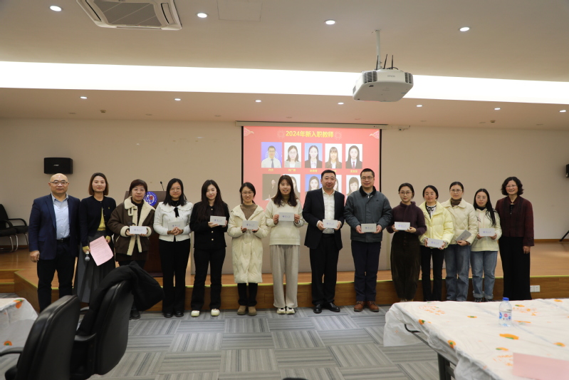 王建新为新入职教师致欢迎辞,鼓励他们秉持初心,立德树人;勇于探索,追求卓越;团结协作,共谋发展。随后,王建新、潘俊为新入职教师赠送校徽纪念章,表达了对他们的殷切期望和美好祝福。