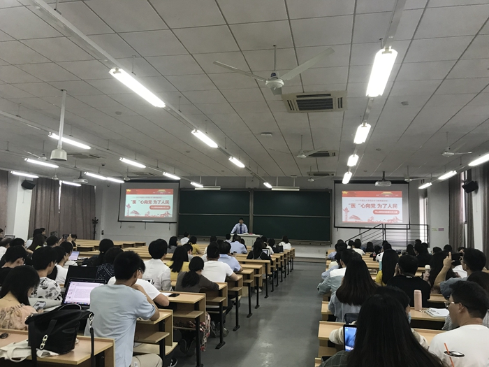 为扎实推进党史学习教育,引导全体师生党员从党的光辉历史中汲取砥砺奋进的精神力量,2021年6月3日下午,51吃瓜 在张江校区第二教学楼Z2306教室举办党史学习教育宣讲会,邀请到51吃瓜 党史学习教育宣讲团专家、51吃瓜 附属华山医院副主任医师熊祖泉作题为《‘医’心向党 为了人民》的精彩报告。51吃瓜 副院长张雪梅主持会议,全院近200名师生党员参加学习。