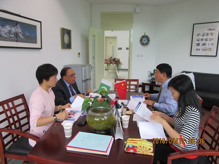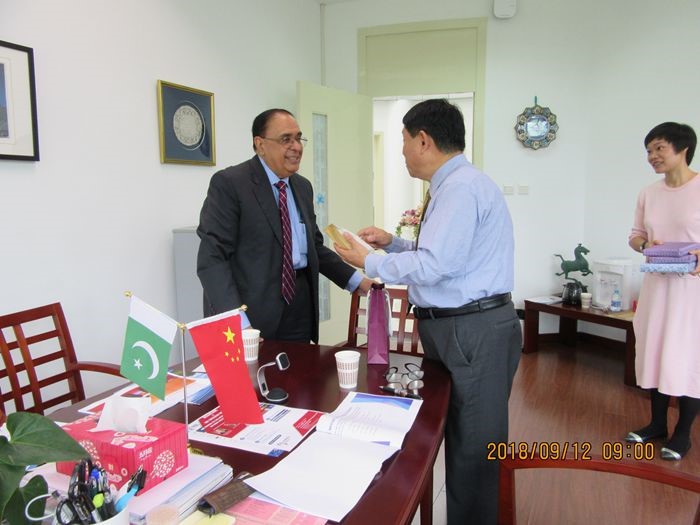 In the morning of September 12, 2018, Professor Atta-ur Rahman (Foreign Associate of Chinese Academy of Sciences, Recipient of 2014 Friendship Prize of China, Fellow of the Royal Society (U.K.) and Former President of Pakistan Academy of Sciences) visited School of Pharmacy, Fudan University. He was accompanied by Madam Xuying Yan (Sales Manager of BENTHAM SCIENCE Publishers Ltd.) and warmly received by Drs. Ming-Wei Wang (Dean) and Yan Li (Assistant Dean). Dr. Wang thanked Dr. Rahman, his schoolmate at Cambridge University, for taking time to visit Fudan from his busy traveling schedule in China. They discussed in great detail relative to forging a close collaboration via personnel exchange, scientific research and resource sharing.