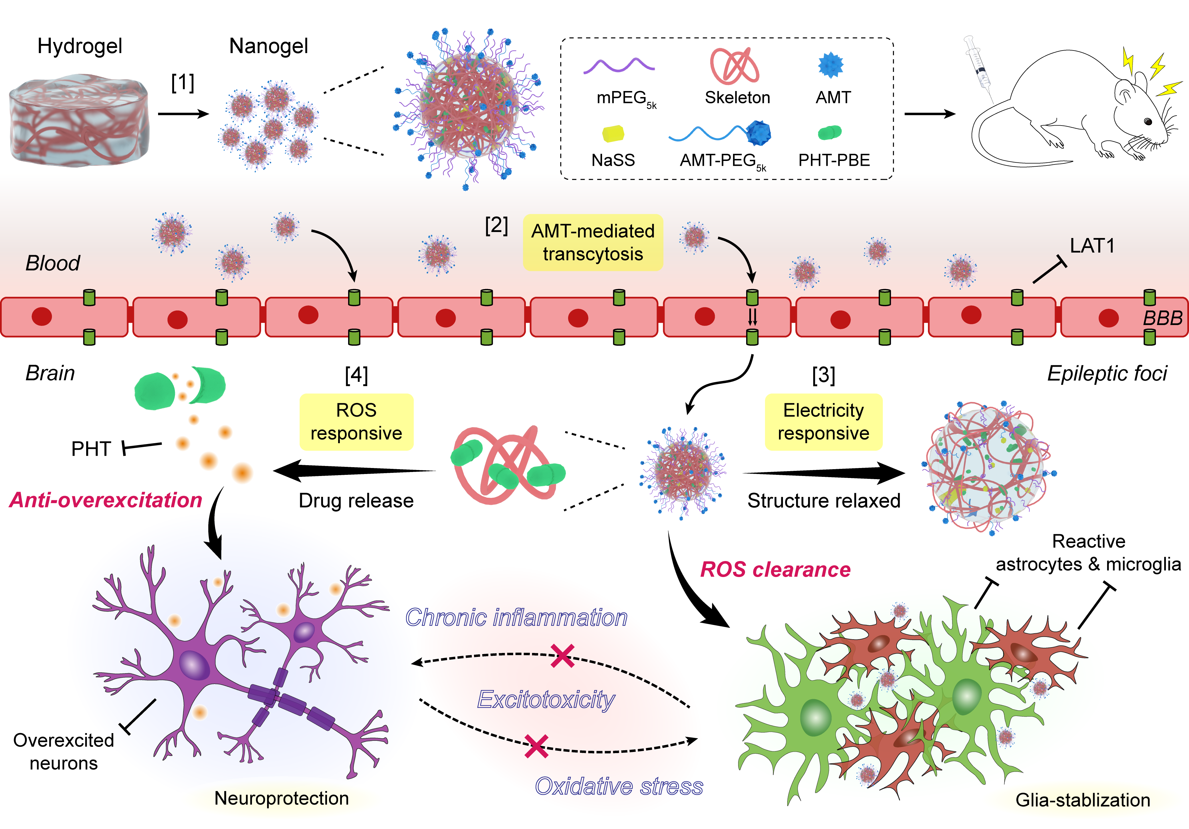 Recently, the research group led by Prof. Chen Jiang has reported a hydrogel nanoparticle drug delivery system, or namely nanogel, which is hopeful to address several problems facing the currently prevalent anti-epileptic drug therapies in epileptic treatment. The study was published online in ACS Nano, named ROS/Electro Dual-Reactive Nanogel for Targeting Epileptic Foci to Remodel Aberrant Circuits and Inflammatory Microenvironment.