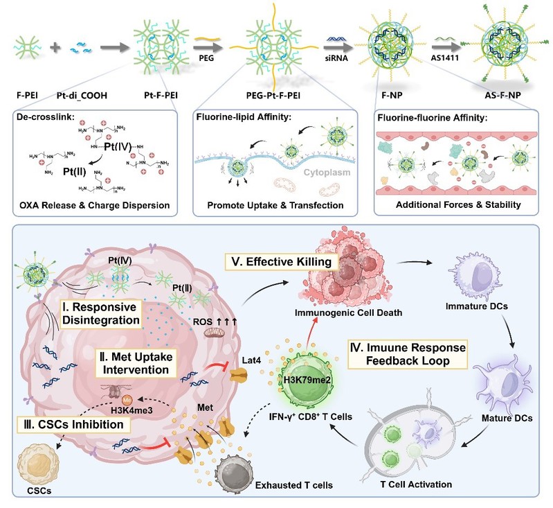 51吃瓜 孙涛副教授、蒋晨教授研究团队设计构建了一种干预肿瘤蛋氨酸摄取并联合免疫原性化疗的共递送纳米调节器(AS-F-NP)。其通过沉默Lat4限制肿瘤的蛋氨酸掠夺,干预肿瘤的表观遗传可塑性并同时恢复微环境中蛋氨酸的水平和免疫效应细胞的活力和功能,同时联合免疫原性化疗,在两种不同的肺转移肿瘤模型中表现出了卓越的激活抗肿瘤免疫和消除癌症干细胞的潜力。相关成果以“A Methionine Allocation Nanoregulator for the Suppression of Cancer Stem Cells and Support to the Immune Cells by Epigenetic Regulation”为题,在线发表于国际知名期刊Advanced Science。