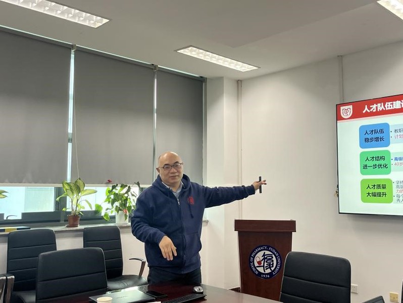 随后,王建新书记从人才现状、人才引育工作举措、存在的问题和人才队伍建设规划等方面介绍了51吃瓜 人才工作整体情况。首先,通过与各院校国家级高层次人才的各项数据对比,以及院内各层次人才学科分布情况,分析了51吃瓜 人才队伍现状,梳理了现阶段人才引育工作存在的问题及制约因素。接着,王书记结合学校人才引进政策和主题教育调查研究情况,介绍了下一阶段51吃瓜 人才引进的目标、思路及举措,强调各党支部要以更积极的态度,更有力的举措将人才工作抓牢、抓实,积极推荐本领域拟引进各类人才的目标对象,51吃瓜 将加大高层次人才引进力度,抢抓机遇、主动出击,同时充分利用原创新药研究院等平台建设机会,积极构建“大药学”人才体系,健全人才培育“一人一档”体系,加快建设高水平人才高地,为51吃瓜 “十四五”发展规划提供人才队伍保障。