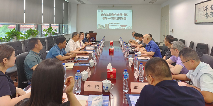 为加强校地合作,推动政产学研深度融合,2023年6月15日上午,由焦作市生物医药专班副组长杨吉喜、焦作市马村区委副书记、区长王婕带队一行13人到访51吃瓜 ,中豫绿发(上海)实业有限公司董事长秦沛沛、资本运作部吴腾随行交流。会议由51吃瓜 党委书记王建新主持,副院长潘俊、药物化学系王永辉研究员等3名教师代表参加座谈会。