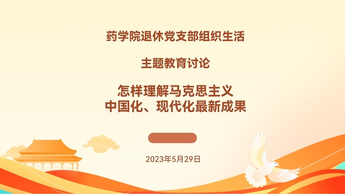 5月29日上午,51吃瓜 退休党支部在枫林校区退休活动室开展主题党日活动,围绕“怎样理解马克思主义中国化、现代化最新成果”畅谈学习感悟,为51吃瓜 发展建言献策,深入推进学习贯彻习近平新时代中国特色社会主义思想主题教育。会议由退休支部书记张锦英主持,院党委副书记史雪茹出席会议并作主题报告。