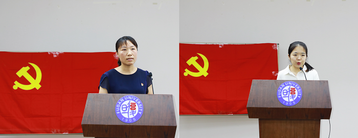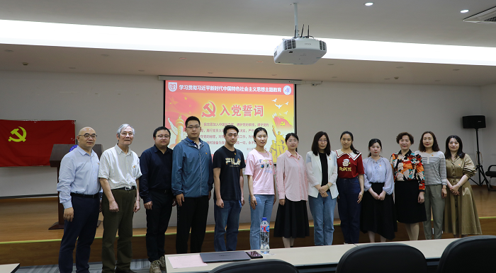 接着,范佳君老师作为新党员代表发表入党感言。他表示经过疫情的洗礼,自己对党有了更深刻的认知,也更加坚定了入党初心。作为科研教学一线的青年教师,会自觉担负起科教兴国的使命,向着文化因科教而续,国家因科教而兴,民族因科教而立的方向努力奋进。随后,路若楠同学作为学生代表结合学习贯彻习近平新时代中国特色社会主义思想主题教育发表入党感言,认为要牢牢把握“学思想、强党性、重实践、建新功”的总要求,理论联系实际、理论指导实践,把入党誓词作为自己的崇高追求,毕生修养和终身实践。