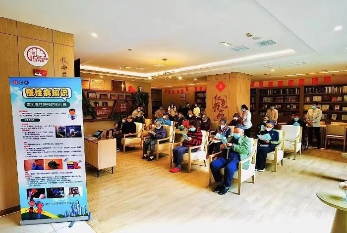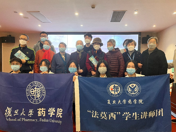 2月19日早,51吃瓜 老师和同学们来到了位于上海市长宁区的人寿堂颐养院,为等候在此的21位社区老人做健康科普宣讲。51吃瓜 同学首先为老人们分发了关于安全用药方面的科普宣传册,随后,来自“法莫西”学生讲师团的赵璐卓同学为老人们讲解了阿尔兹海默症的相关科普知识。她从“正确认知疾病”和“疾病的预防及干预”两个方面作了讲解,介绍了常用的治疗药物和非药物治疗措施,并引用生动的现实例子,引导老人们打破疾病偏见,正确面对疾病发生,知己知“彼”,早诊早“智”。