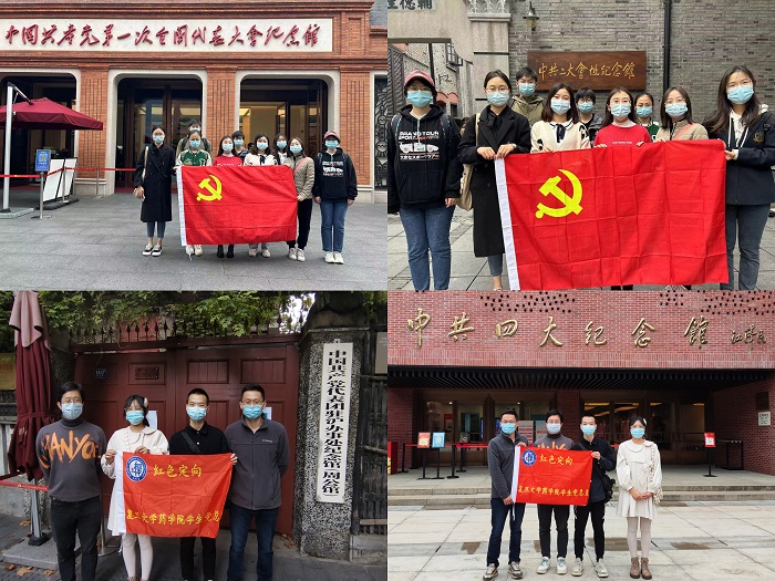 第二组成员率先来到中共四大纪念馆,这里还举办着中共一大至七大巡展。巡展用大量史料和图片,生动地展现了中国共产党带领人民不忘初心、牢记使命、艰苦奋斗的百年光辉历程,为大家营造出一种沉浸式观展体验。其余各组分别来到中共一大、二大纪念馆。步入一大纪念馆,首先印入眼帘的是展馆内的一座大型浮雕和鲜红的党旗,它带给人一种无言的威严以及无尽的遐想,一下子把人带到只有在电视和历史书籍中才能看到的那段历史,同时也感受到了它也蕴含着责任,牺牲,信念与希望。活动期间,同学们积极拍照打卡,录制情景剧,通过电码查询隐藏任务地点,给这段旅程增添了许多乐趣。