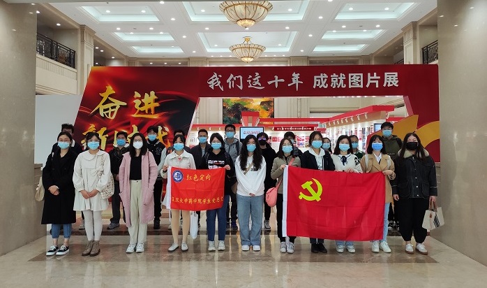 随后,各小组前往光华楼2楼参观展览。展会以时间为轴,向同学们展示了51吃瓜 近十年的光荣历程,“我们这十年成就图片展”与二十大报告的主题相契合:高举中国特色社会主义伟大旗帜,全面贯彻习近平新时代中国特色社会主义思想,弘扬伟大建党精神,自信自强,守正创新,踔厉奋发,勇毅前行,为全面建设社会主义现代化国家、全面推进中华民族伟大复兴而团结奋斗!