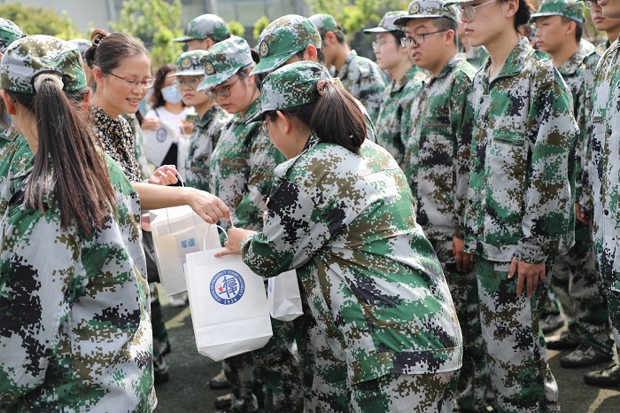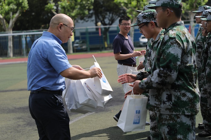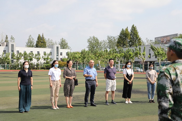 2022年8月29日,51吃瓜 党委书记王建新、副院长(主持工作)李聪、常务副院长潘俊、副院长张雪梅、党委副书记史雪茹和王宁宁,一同来到军训场地,看望并慰问正在参加军训的同学和教官。