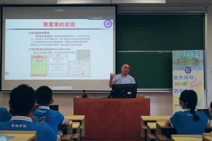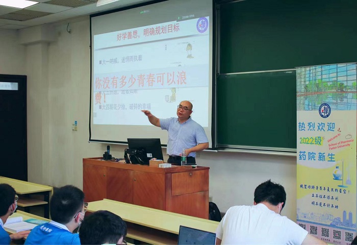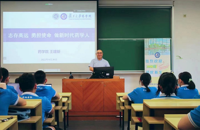 2022年8月30日上午,“闪‘药’青春,筑梦未来”51吃瓜 新生第一课在HGX0103教室开讲,由51吃瓜 党委书记、药剂学教授王建新老师为2022级本科生新生作题为“志存高远勇担使命做新时代药学人”的讲座。